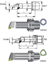 - voor draaibewerkingen - koeling door uitgelijnde koelmondstuk en hogedrukkoelmondstuk - het aandrijven van groeven op de HSK volgens de ICTM-standaard Note: L = links R = rechts |