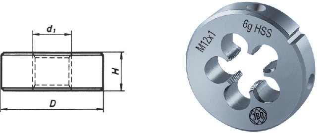 POUR une utilisation manuelle et mécanique , pour le traitement de l'acier jusqu'à environ 800 N / mm² ainsi que divers matériaux. La coupe écaillée fait couler librement les copeaux vers l'avant et réduit le couple de coupe. Les bourrages de copeaux dans les trous de copeaux sont évités. Il en résulte une meilleure qualité de surface pour les filets coupés et une durée de vie plus longue. Tous les matrices utilisées sur les machines doivent donc être équipées d'une découpe pelable.