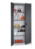 ontwerp: - Scharnierende deuren met drievoudige grendel rond slot - Rekken gegalvaniseerd of gelakt RAL 7035 lichtgrijs - Belastbaarheid met gelijkmatig verdeelde belasting ca. 50 kg per legbord - Buitenafmetingen van de draaideurkast H x B x D: 1950 x 935 x 400 mm - Behuizing+deuren RAL 7035 lichtgrijs - Behuizing RAL 7035 lichtgrijs / deuren RAL 5012 lichtblauw - incl. 2 sleutels 313,04 € excl. BTW