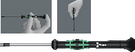 - geharde messen van speciaal staal - nicromatt, Black Point tip - messen met gekantelde aandrijfpunt garanderen een veilige pasvorm in verzonken gaten - meercomponentenhandgreep Kraftform-Micro met afrolbeveiliging en draaibare kap drie-zoneconcept efficiëntiezone: door draaibare kap plus Hogesnelheidszone forfortzone:voor de overdracht van hoge los- en aanhaalmomenten precisiezone:voor de juiste draaihoek tijdens het instellen gebruik: voor nauwkeurig schroeven op het gebied van elektronica, precisie-engineering, enz. |