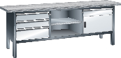Version: - profondeur 700 mm - panneau multiplex, épaisseur 40 mm - panneau hêtre, épaisseur 50 mm - 1 panneau établi - 1 Boîtier - 4 tiroirs, hauteurs 3x 150 mm, 1x 200 mm - 1 compartiment avec porte 350 mm - 3 étagères