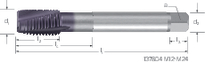 - 4 - 5 draadtap, vorm D voor doorlopende draad - speciaal geschikt voor toepassingen in titanium - constante spaanhoek over de gehele draadlengte maakt zeer stabiele loden tanden voor het bewerken van hoge sterkte |