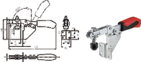 - comme 299100 - bras de tension et d'actionnement contrarotatifs - très faible hauteur - pince horizontale, avec bras de maintien ouvert et pied coudé |