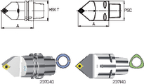 - pour l'usinage de tournage - refroidissement au moyen d'une buse de refroidissement alignée et d'une buse de refroidissement à haute pression - rainures d'entraînement sur le HSK selon la norme ICTM * Version HP ready - Infos voir page 23 / ??? |