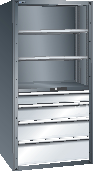 - dimensions des tablettes L x P x H = 1020 x 706 x 2200 mm - dimensions des tiroirs utilisables L 918 x P 612 mm - avec 1 paroi arrière, 1 Sol universel - champ de base: 2 cadres de montant et 2 parois latérales - champ de fixation: 1 cadre de montant, sans paroi latérale Remarque: Ces casiers à tiroirs sont équipés d'une serrure à cylindre. Des serrures à combinaison électroniques sont également disponibles sur demande. |