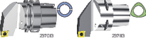 - pour l'usinage de tournage - refroidissement au moyen d'une buse de refroidissement alignée et d'une buse de refroidissement à haute pression - rainures d'entraînement sur le HSK selon la norme ICTM - des supports de serrage pour usinage externe peuvent également être utilisés pour l'usinage interne peut être utilisé en tenant compte du D1 min. Remarque: L = gauche R < / b> = droite * Version HP ready - info voir page 23 / ??? |