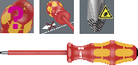 - gemaakt van hooggelegeerd speciaal staal (behalve TORX® en externe zeshoek) - garandeert een hoge slijtvastheid - Lasertipblad voorkomt uitglijden van de schroefkop - ergonomische, meercomponenten Kraftform-handgreep met afrolbeveiliging - voor werkzaamheden aan onderdelen onder spanning tot 1. 000 V - gepolijst en geïsoleerd - volgens EN 60900 Note: 2.5 / 3.0 / PH0 / PZ0 = zonder lasertip |