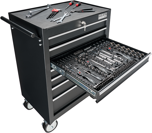 ontwerp: - Opbouw van 0,8 mm plaatstaal, gepoedercoat, met beschermende mat - met centrale vergrendeling door cilinderslot - 7 laden met volledige uittrekbaarheid Fronthoogtes: 5x 75 mm, 1x 100 mm en 1x 154 mm - 2x zwenkwielen met parkeerrem, 2x bokwielen - Totaal draagvermogen: 200 kg 536,84 € excl. BTW